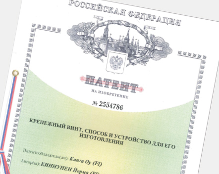 – Olemme saaneet Venäjälle voimaan designmallisuojan ja patentin suojaamaan KINGI® kateruuvia ja mahdollistamaan markkinoiden nopean kasvattamisen, Kinnunen kertoo ja esittelee komeita patenttitodistuksia.