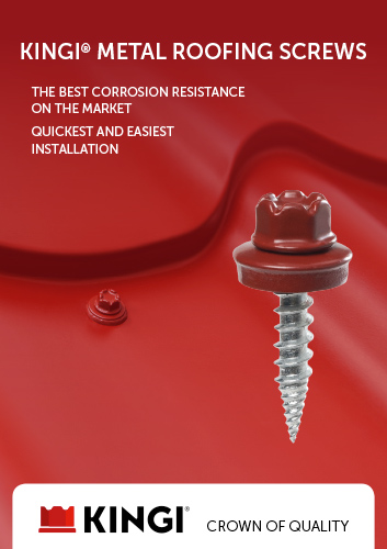 When you want the whole color coated metal roof to last long, the metal roofing screws must last as long as the metal steel sheet. The KINGI® metal roofing screw is a coated steel screw that lasts, even in harsh weather conditions thanks to its unique patented Durabl3-coating system. The coating system of the KINGI® screw is produced according to the DIN 55634 standard and meets the requirements of corrosion classes C1–C4.