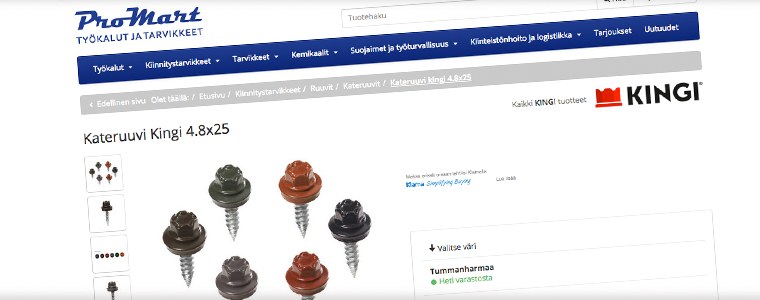 ”Tarjoamme asiakkaillemme vain markkinoiden johtavia takuutuotteita ja siksi halusimme KINGI® kateruuvin tuotevalikoimaamme. Vuosisopimusasiakkaana saamme takuuvarmasti korroosionkestävät ja Suomen ilmastoon sopivat ruuvit asiakkaillemme heidän aikataulujen mukaisesti.”